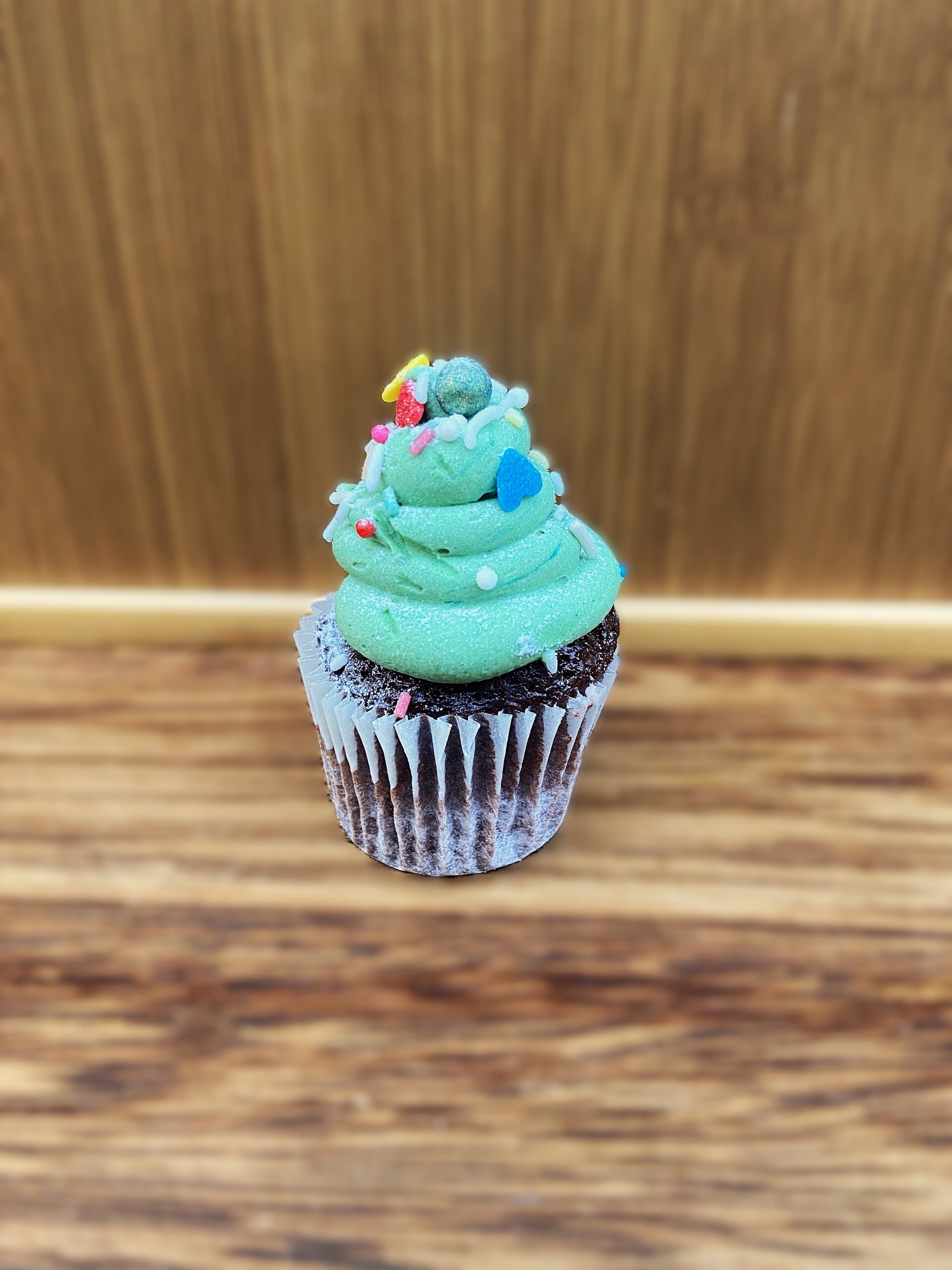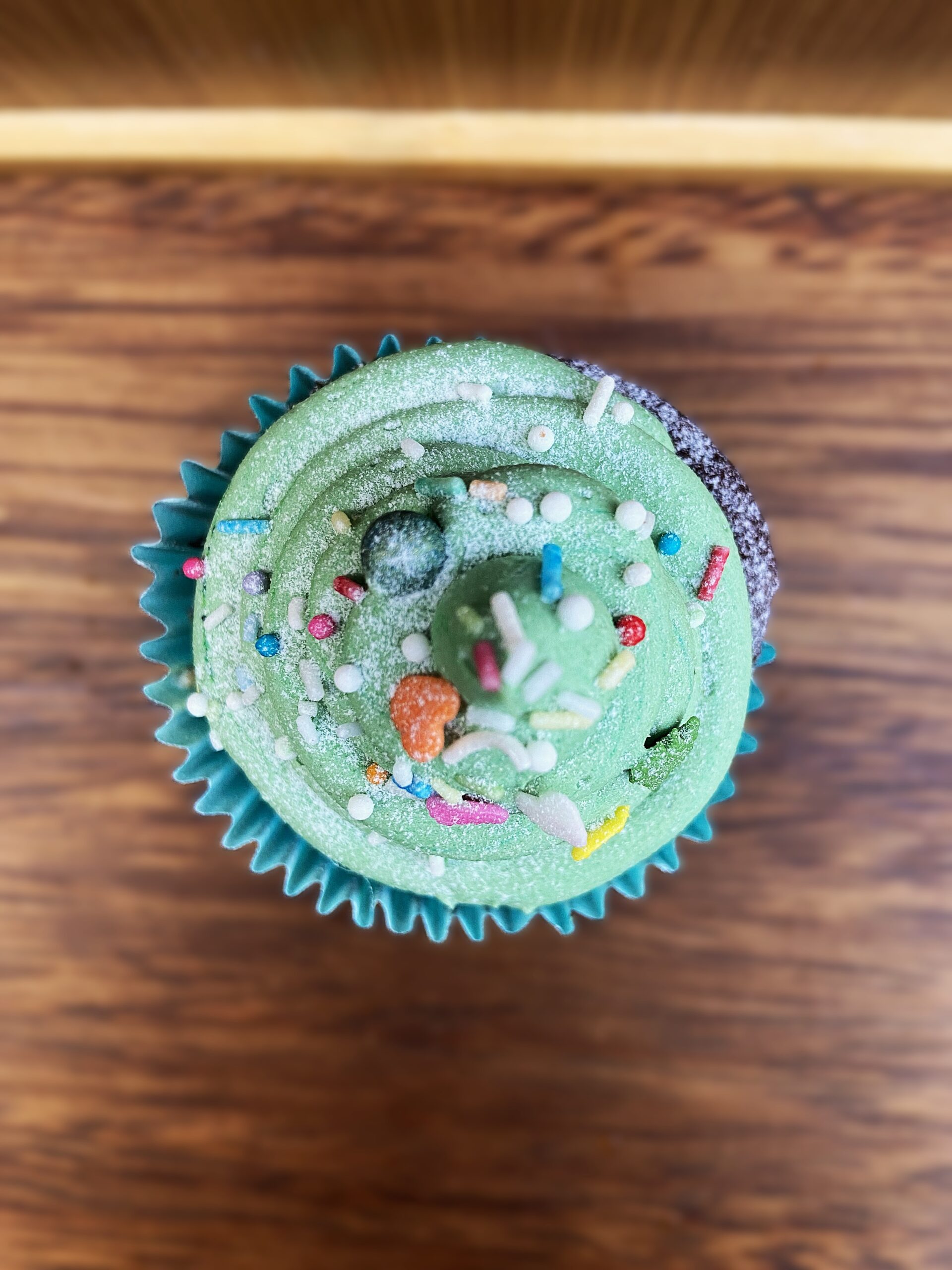 Délicieux cupcake avec une génoise au chocolat et une crème à la pistache – Un petit plaisir gourmand !