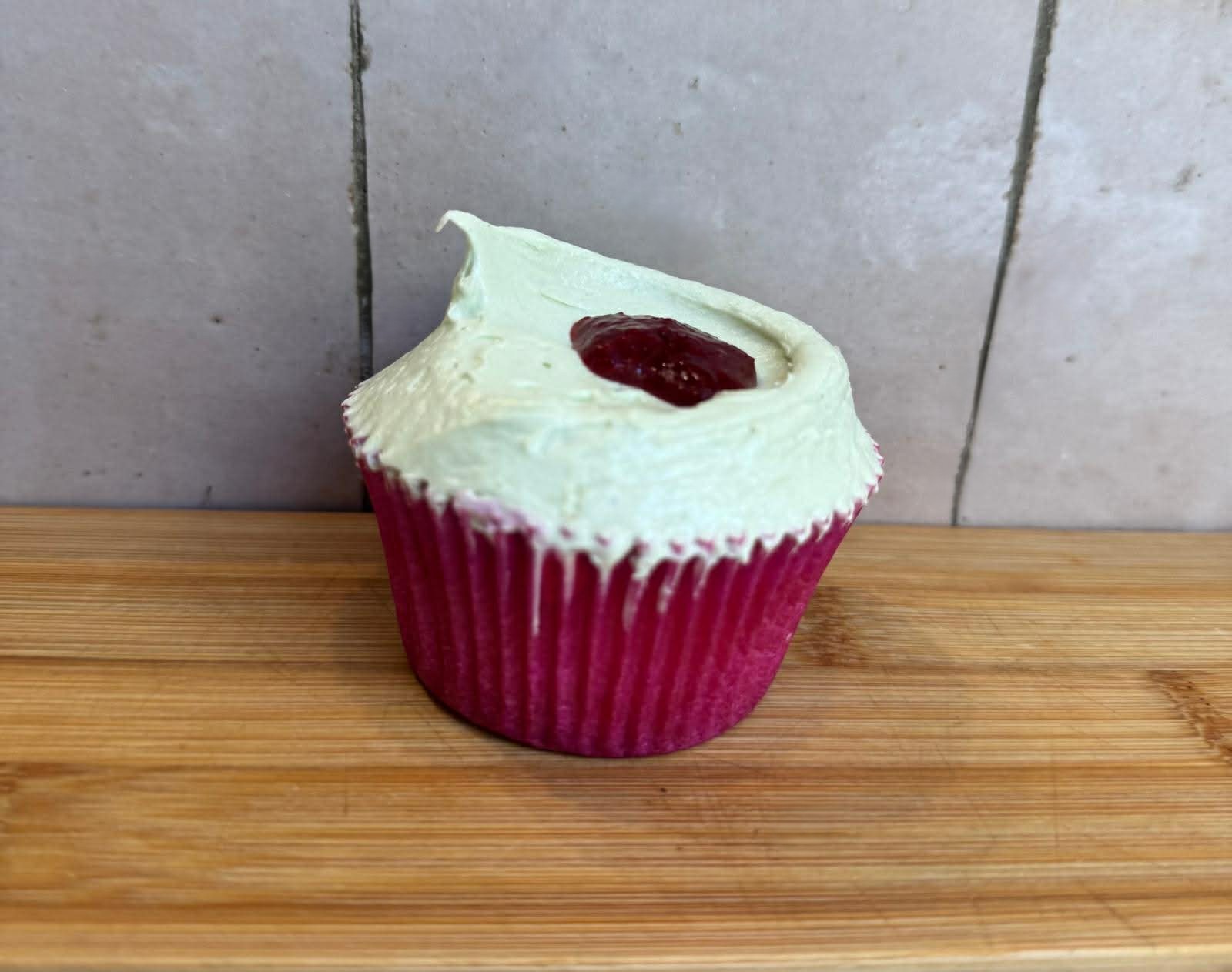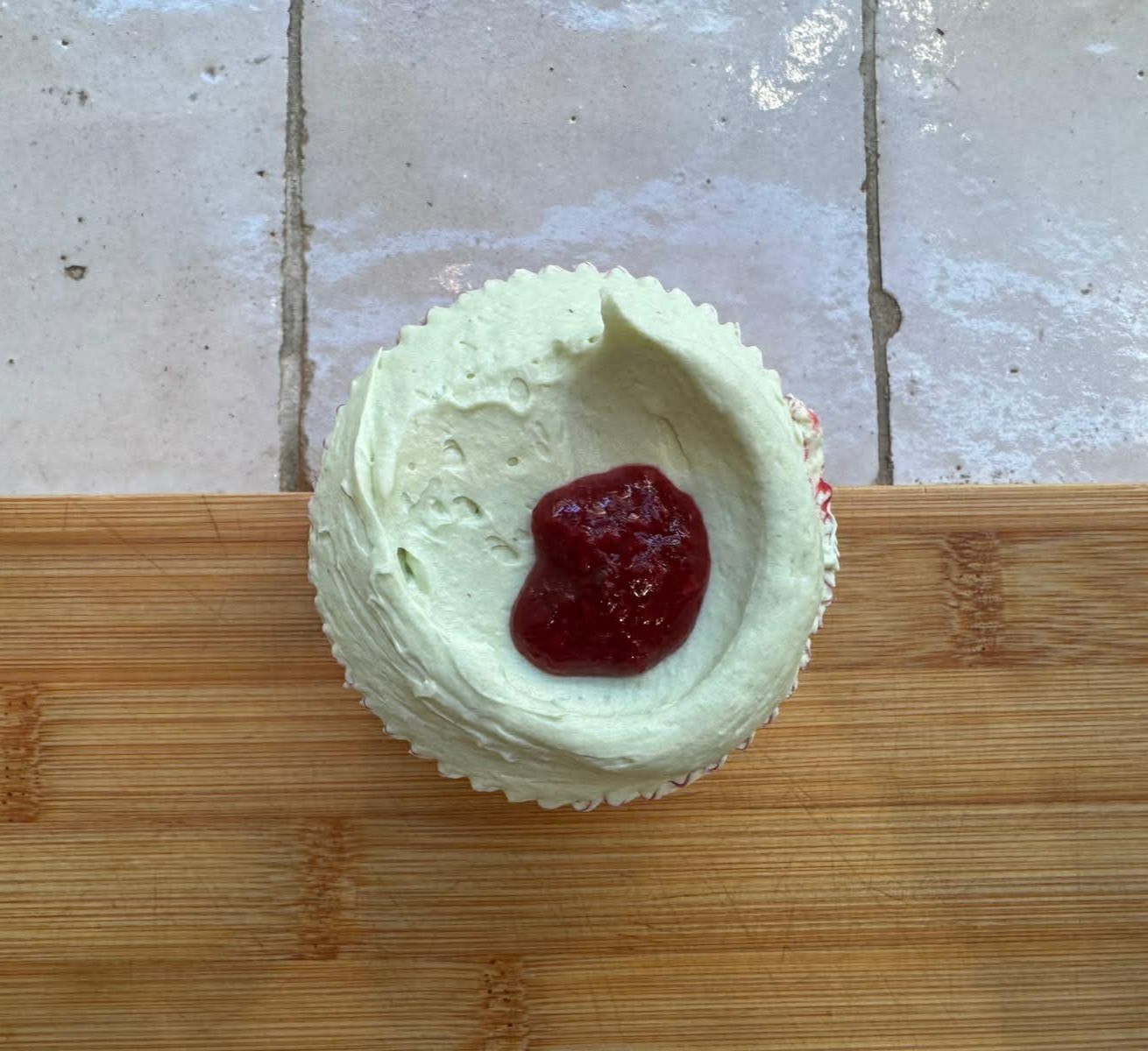 Cupcake à la pistache avec un cœur framboise coulant : délicieux ! Moelleux à souhait, garni d’une crème à la pistache avec un cœur framboises.