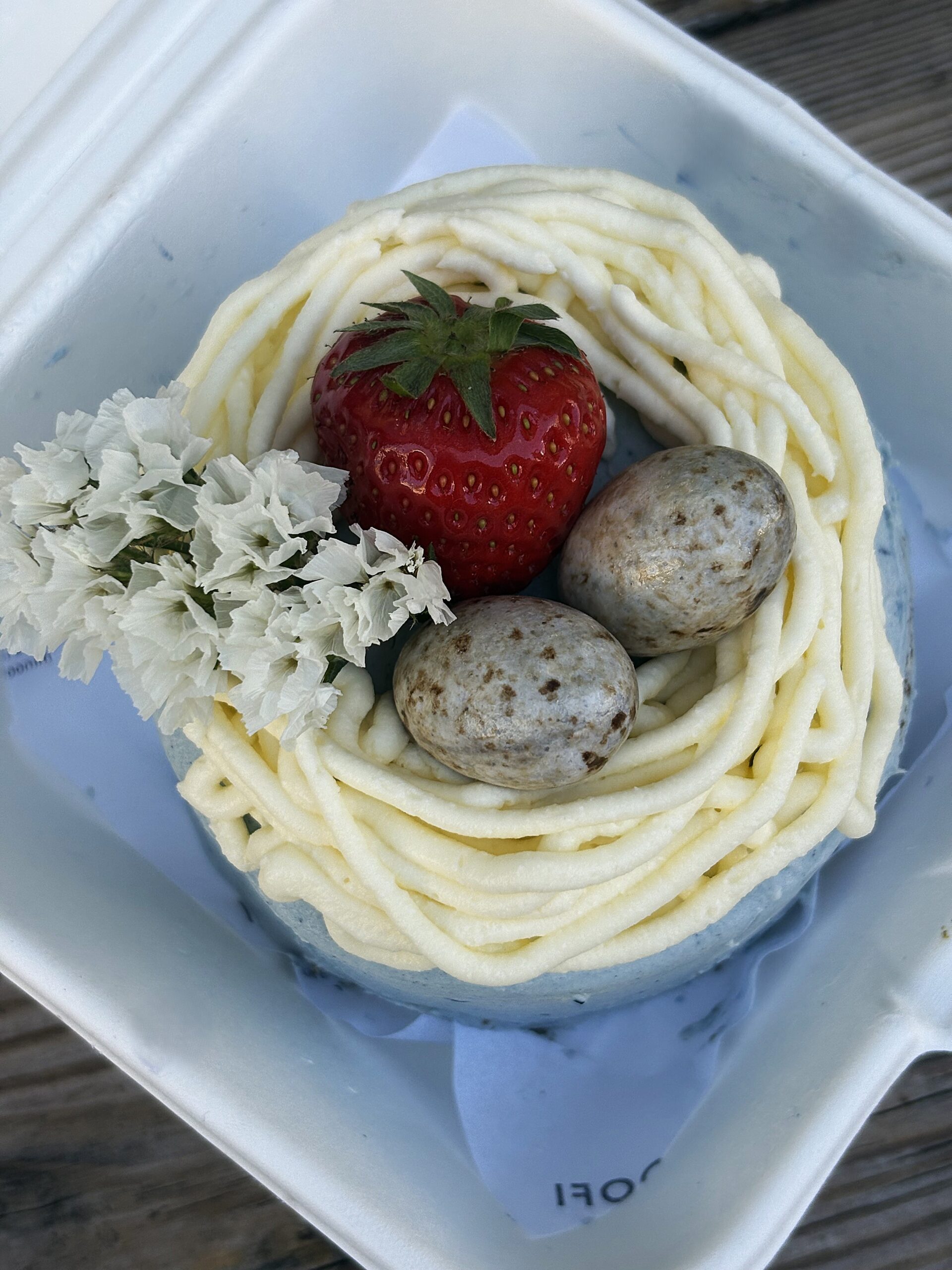 Rien de tel qu’un délicieux bento tout choco de chez Minoofi pour passer une bonne fête de Pâques ! Orné d’une fraise délicieuse et de deux œufs croquants au chocolat et à la crêpe dentelle dans son nid douillet à la crème . Faites fondre les cœurs avec douceur !