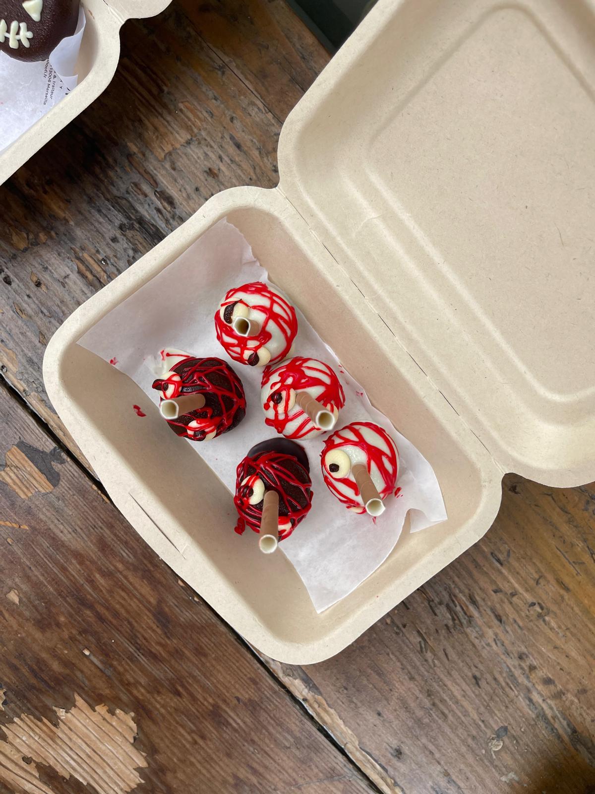 5 pieces de popcake redvelvet couvert en chocolate noir ou chocolat blanc ! 15€